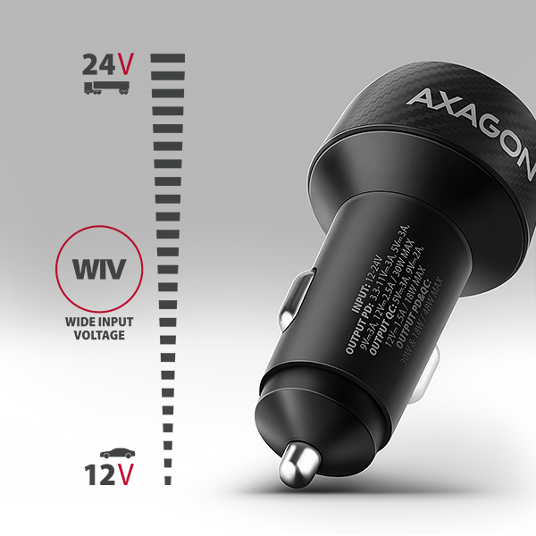 Univerzální nabíječka do auta AXAGON PWC-PQ48 umožňuje rychlé nabíjení až dvou mobilních zařízení současně pohodlně na cestách. Díky celkovému výkonu 48W dokáže nabíječka dobíjet telefon a tablety nejvyšší možnou rychlostí. Adaptér nabízí nejen standardní USB-A konektor, ale také oboustranný USB-C konektor.