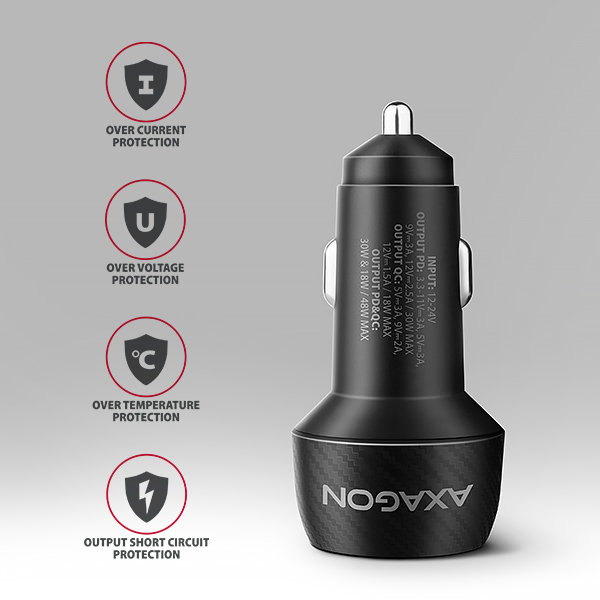 AXAGON PWC-PQ48 nabíječka do auta 48W, USB-A + USB-C, PD3.0/PPS/QC4+/SFC/Apple |