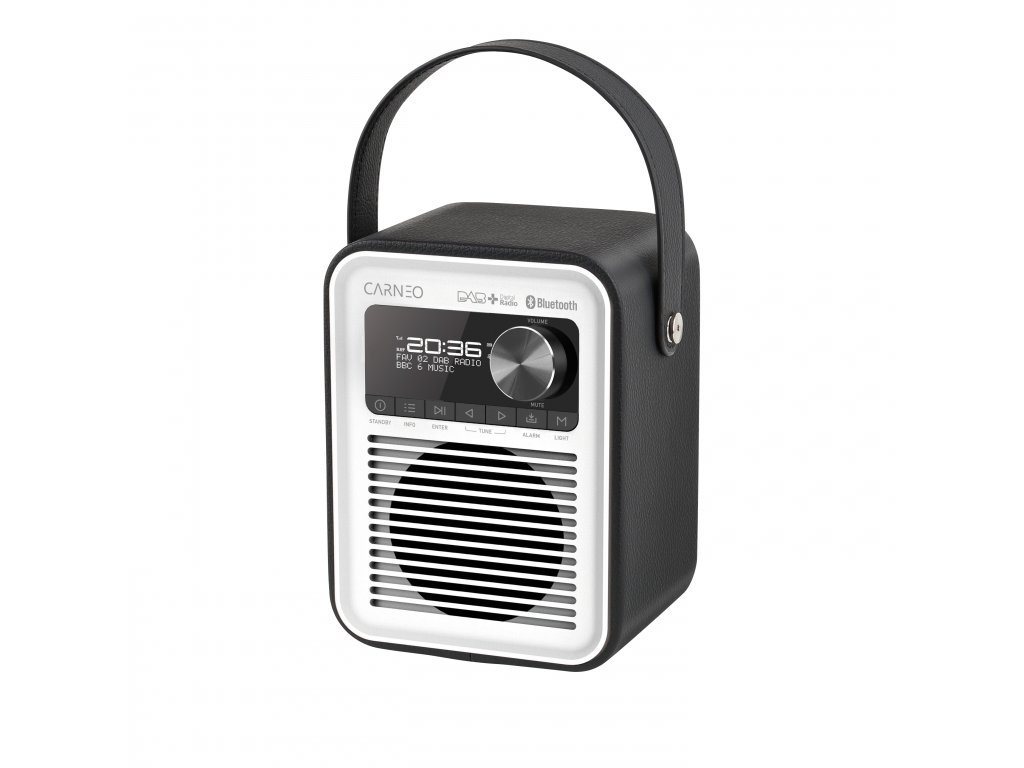CARNEO D600 je kompaktní rádio s módním designem. Poslouchejte své oblíbené rozhlasové programy v pásmu FM nebo DAB+. Digitální tuner DAB+ přijímá signály z éteru čistě a bez šumu. Oblíbenou hudbu můžete poslouchat také bezdrátově prostřednictvím Bluetooth ze smartphonu nebo tabletu.